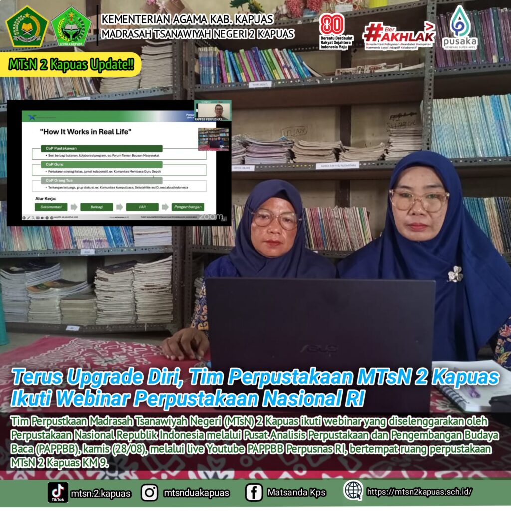 Terus Upgrade Diri, Tim Perpustakaan MTsN 2 Kapuas Ikuti Webinar Perpustakaan Nasional RI